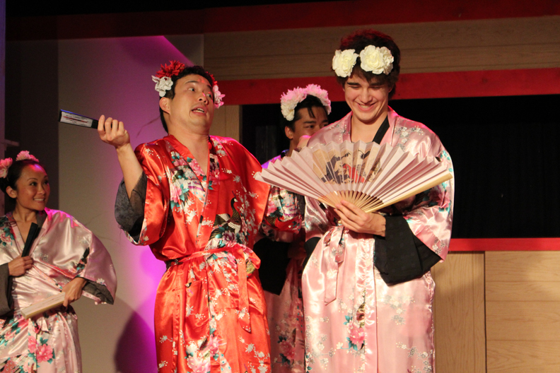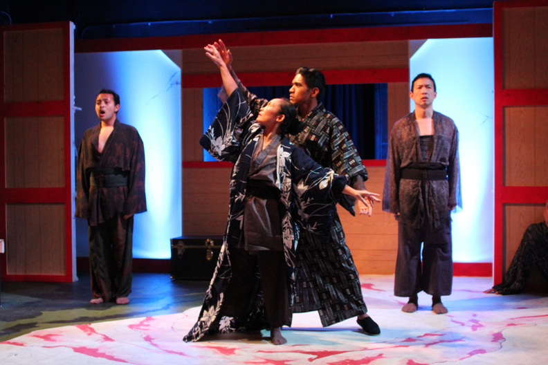 “The actors are to be commended for their triple-threat performances using every inch of the small performance space, supported by the very Asian-flavored scenic design by Hector Figueroa and ever-changing colorful lighting design by Jesse Baldridge, which highlight the mood of each scene, with the traditional Japanese costume design by Kara McLeod a joy to behold.”