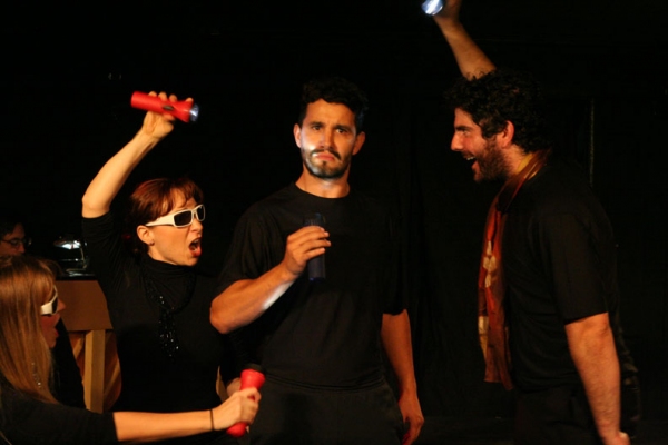 Design Brief: The Musical of Musicals: The Musical! requires actors to speed through musical genres and show references onstage and rapidly. To support the comic switches, I put the actors into clean and simple blacks, accessorized with pieces appropriate to the moment, stressing red and white as through notes. ~KM